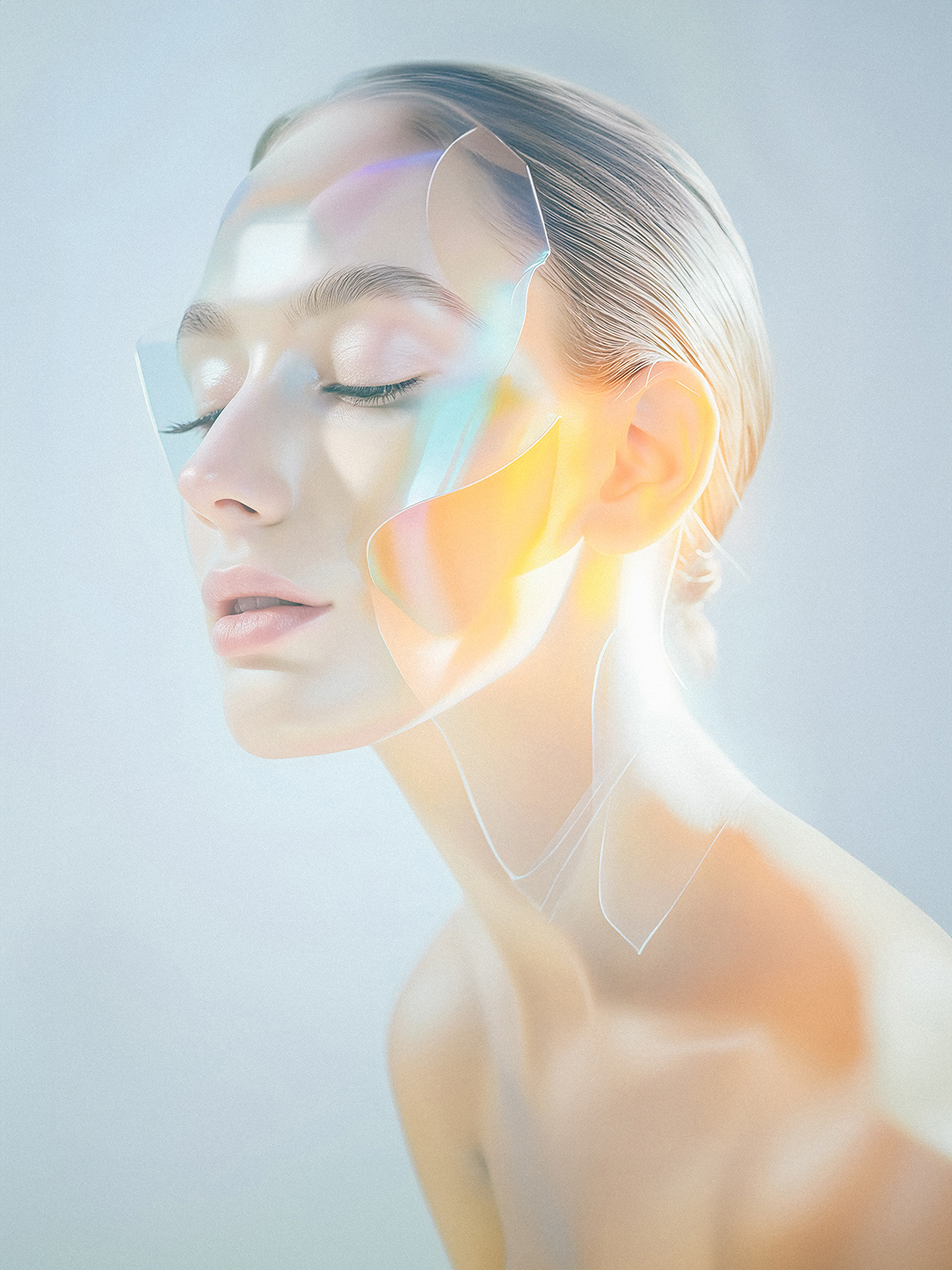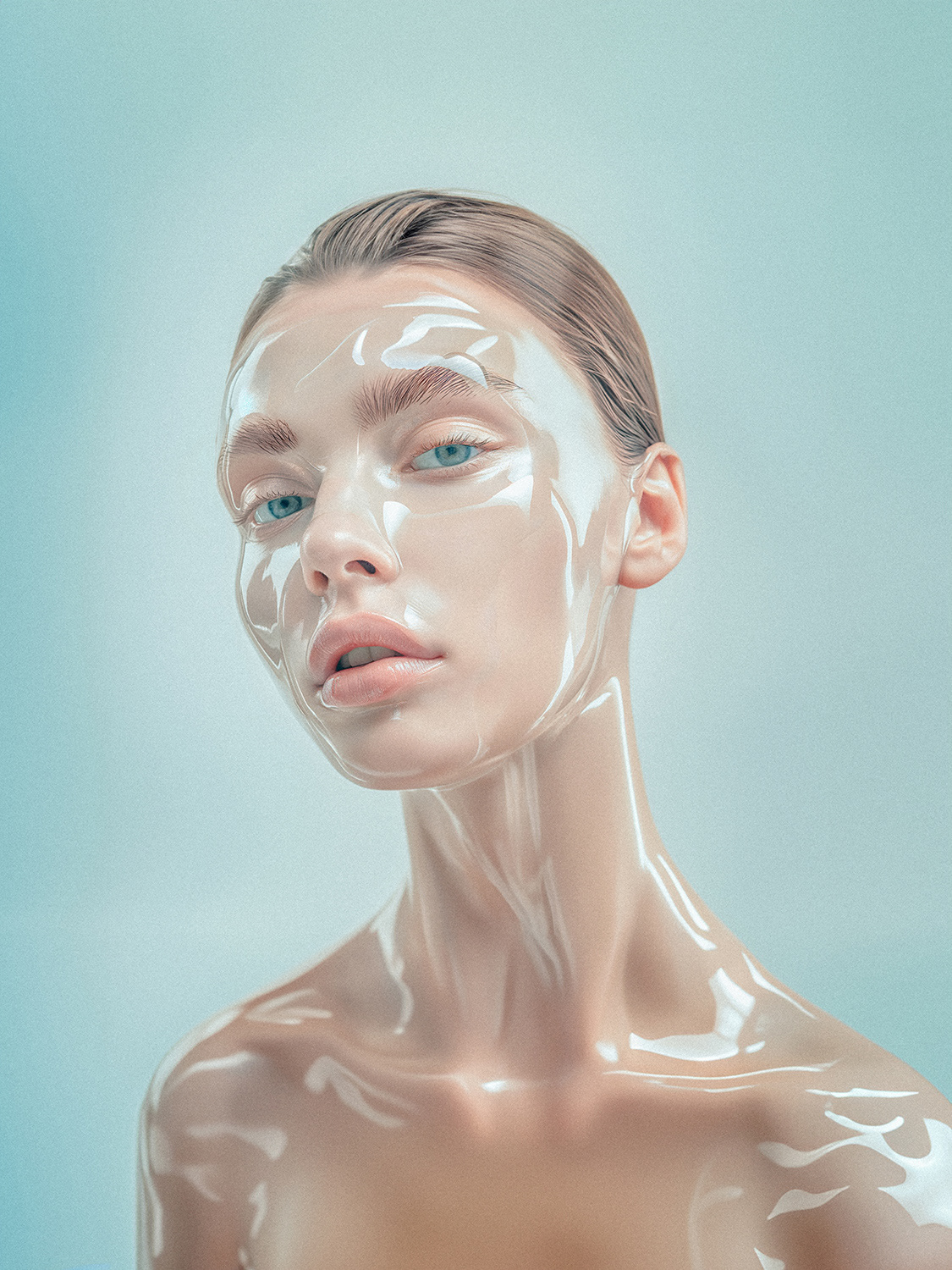 A project in which I created a series of AI large-format portraits (all photographs are more than 100cm print size) to draw attention to the use of microplastics in cosmetic products and to warn about their impact on the environment.